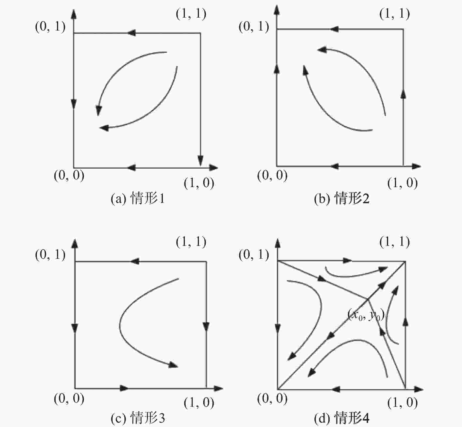 博弈主体 OTA平台 采取“退守酒店、租赁产业” 不采取“退守酒店、租赁产业” 航企 采取“提直降代”策略 $ R - F - L - (C - {C_{\mathrm{e}}}) + (1 - \alpha )B $ $ R - F - (C - {C_{\mathrm{e}}}) + (1 - \alpha )B $ $ (1+\zeta)\left[C+(1+\gamma)S-C_{\mathrm{e}}-D\right] $ $ C - {C_{\mathrm{e}}} - D + S $ 不采取“提直降代”策略 $ R - F - (1 + \beta )C $ $ R - F - C $ $ (1 + \zeta )[(1 + \beta )C + (1 + \gamma )S - D] $ $ C - D + S $ 表 3 均衡点对应的矩阵行列式和迹的表达式