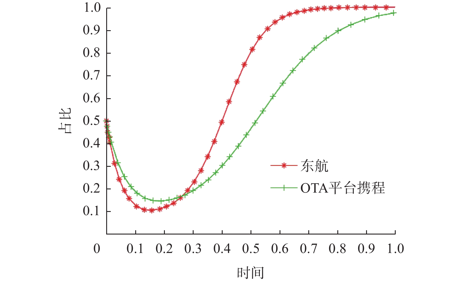 摘要: 以航企与在线旅游代理(online travel agency, OTA)平台在竞争与合作过程中的策略选择为研究对象,建立演化博弈模型,利用复制动态方程与雅可比矩阵研究其策略选择的演化趋势。以中国东方航空(简称东航)与OTA平台携程为例,使用Matlab演化博弈仿真工具,研究不同参数变化对双方策略选择的影响。结果显示,东航采取“提直降代”,OTA平台采取“退守酒店、租赁产业”是双方演化博弈的稳定均衡策略。Abstract: To investigate the strategy choice between airlines and online travel agency (OTA) platforms within a competitive-cooperative context, an evolutionary game model was constructed. The replication dynamic equation and Jacobian matrix applied to explore the evolutionary trajectory of their strategies. Taking China Eastern Airlines and the OTA platform Ctrip as a case study, the impact of varying parameters on the strategies of both sides was examined through Matlab based evolutionary game simulation method. Research shows that the stable equilibrium result of evolutionary game is that China Eastern Airlines will adopt the strategy of "increasing direct sales and reducing agency sales", while the OTA platform will adopt the strategy of "retreating to the hotel and leasing industry".