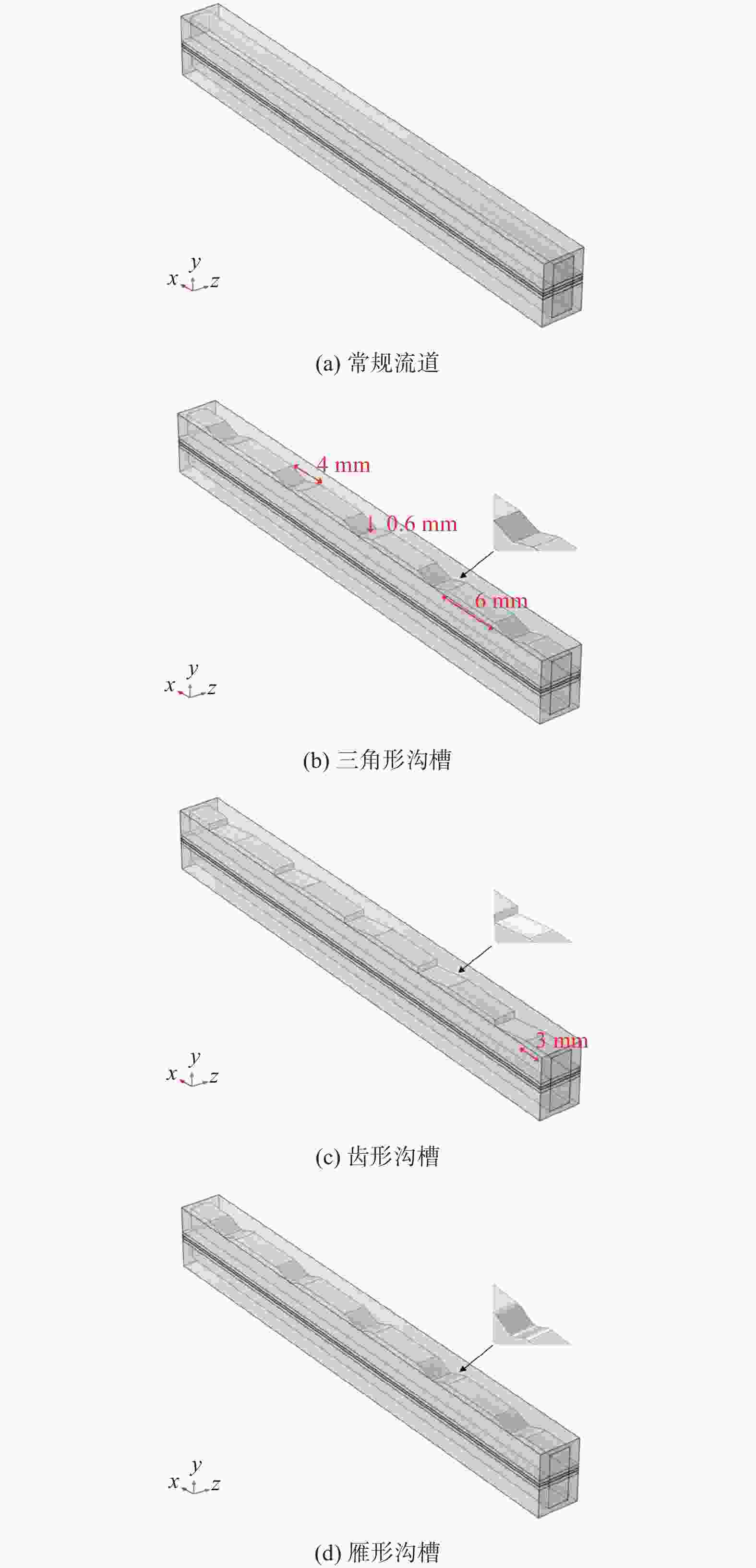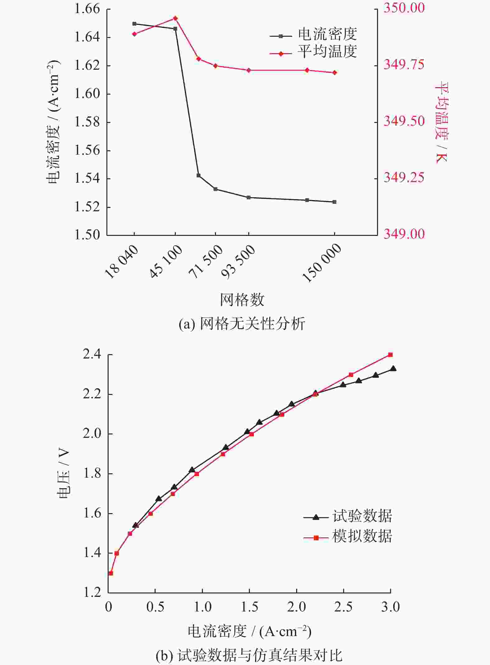 几何结构 数值/mm 电解槽长度 50 电解槽宽度 4 流道宽度 2 流道高度 2 双极板高度 2.5 催化层厚度 0.05 扩散层厚度 0.3 质子交换膜厚度 0.178 表 3 沟槽深度对PEM电解槽性能的影响