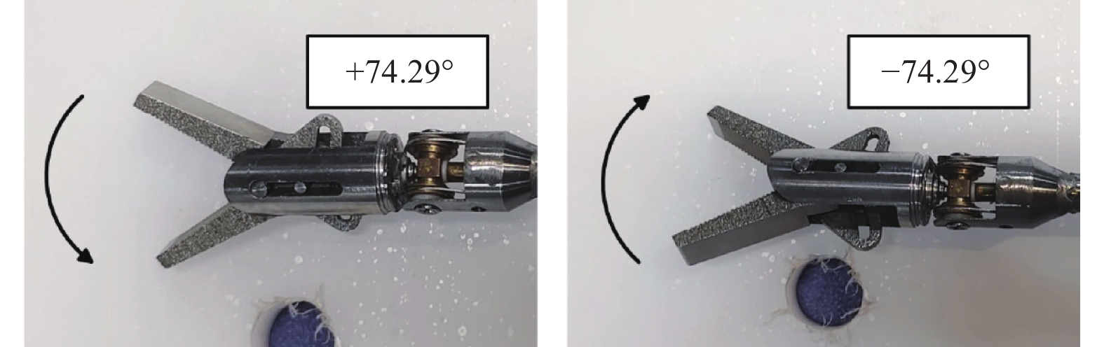 摘要: 以一种微创手术机器人末端执行器为研究对象,提出一种新型旋转机构,并针对末端传动空回特性开展数值模拟与试验研究。通过理论推导建立传动空回计算模型,分析不同影响因素下传递偏差对输出转矩的影响。数值分析结果表明,当输出转矩为0 ~ 0.3 N·m时,传递偏差为0° ~ 0.04°。传动空回特性受预紧力和钢丝绳横截面积影响显著,受自由绳段长度影响较小。最后,制作实物模型并搭建试验平台进行跟踪试验,测得末端执行器旋转阈值为 ± 74.29°。模拟多次手术方向变换操作,对传动空回特性进行数据与误差分析。Abstract: Focusing on the end-effector of minimally invasive surgical robots, proposing a novel rotation mechanism and conducting numerical simulation and experimental research on its transmission backlash characteristics. A computational model for transmission backlash was established through theoretical derivation, with analysis of transfer deviation's impact on output torque under different influencing factors. Numerical results indicate that when output torque ranges from 0 to 0.3 N·m, the transfer deviation stays within 0° to 0.04°. Transmission backlash shows significant sensitivity to preload force and steel wire cross-sectional area, while being less affected by free wire segment length. A physical prototype and experimental platform were constructed to perform tracking experiments, measuring the end-effector's rotation angle threshold at ±74.29°. Data and error analyses of transmission backlash characteristics were conducted through simulations mimicking frequent surgical direction changes during operations.