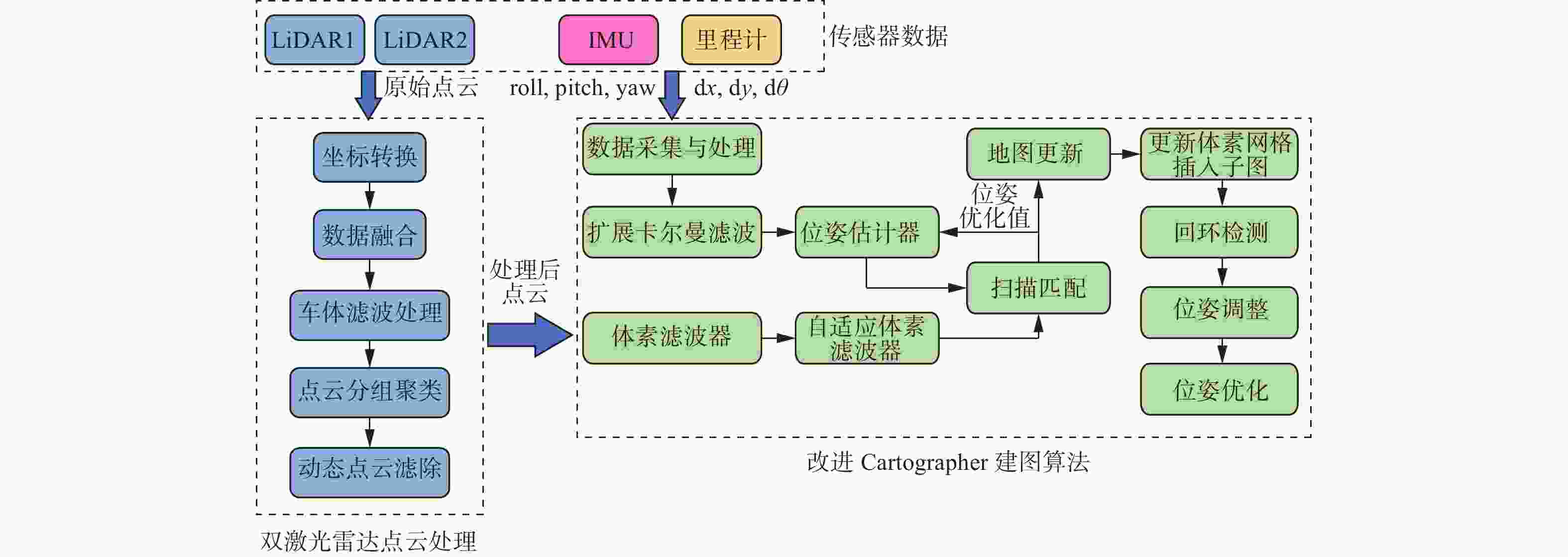 图  3  基于多传感器数据融合与Cartographer改进算法的建图流程