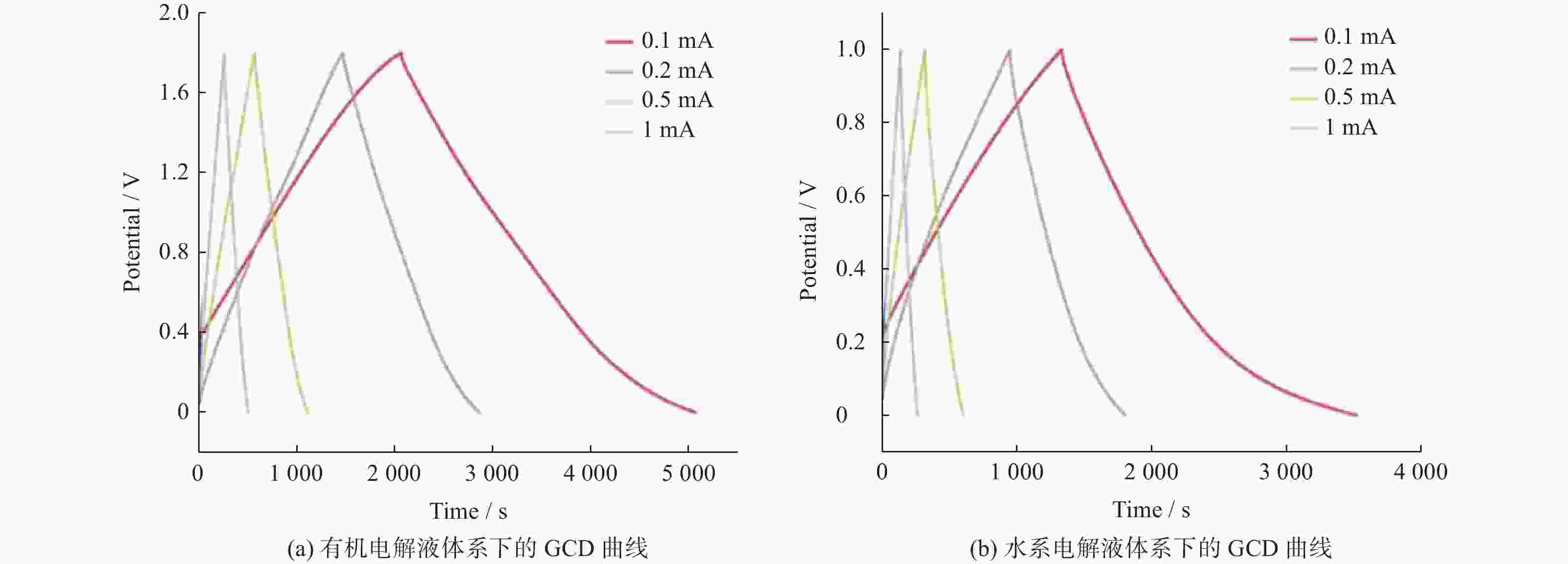 图  4  不同电解液体系下的GCD曲线